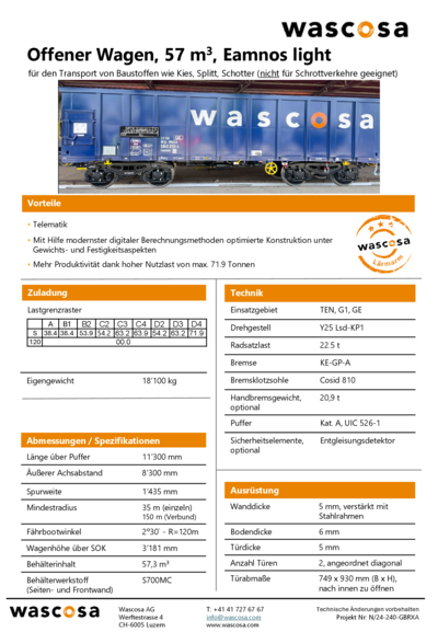 für den Transport von Baustoffen wie Kies, Splitt, Schotter (nicht für Schrottverkehre geeignet)