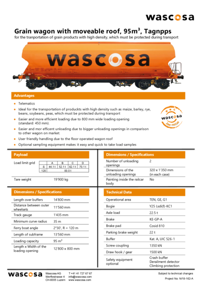 - Déchargement plus facile et plus efficace grâce à des ouvertures de déchargement plus grandes que celles des autres wagons disponibles sur le marché